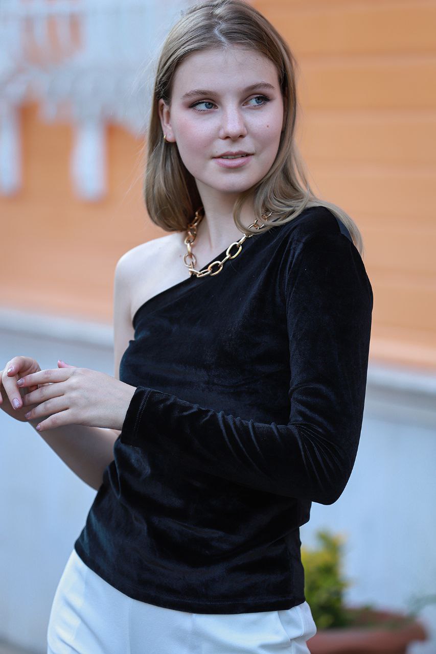SKU: 1009 This CIX Woman Velvet One-Sleeve Crop Top is made in Turkey from soft velvet lycra. Its unique one-sleeve design offers a stylish and comfortable fit for any occasion.