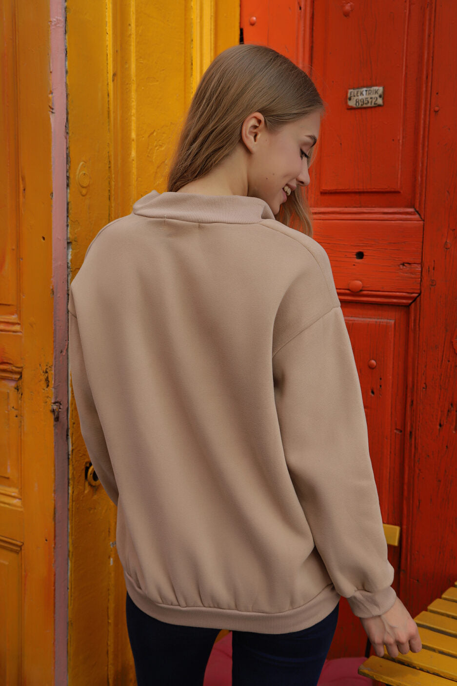 SKU:0022 vintage-inspired Pepsi high-neck sweatshirt features an oversized fit with long, straight sleeves and a regular length. Made from woven fabric with a text print, it includes a modest zipper style. Available in red, black, and camel, it’s perfect for casual holiday wear.