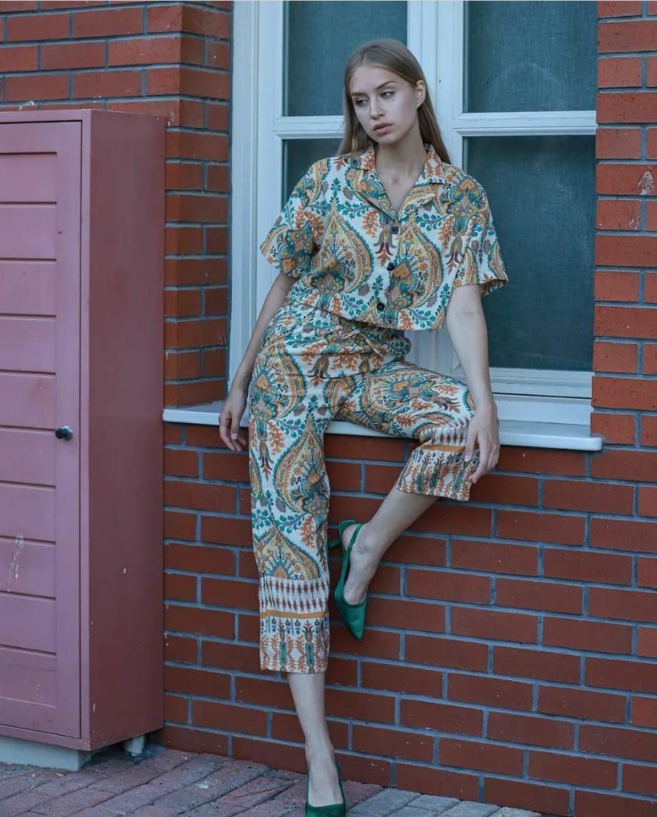 SKU:2619 These women’s high waist straight fit trousers from Turkiye combine linen and cotton for breathable comfort. Featuring an oversized, belted design with a geometric abstract pattern available in multicolor, green, and white, they offer a classic yet casual look perfect for dating or everyday wear. The 3/4 length adds a modern touch while maintaining elegance.